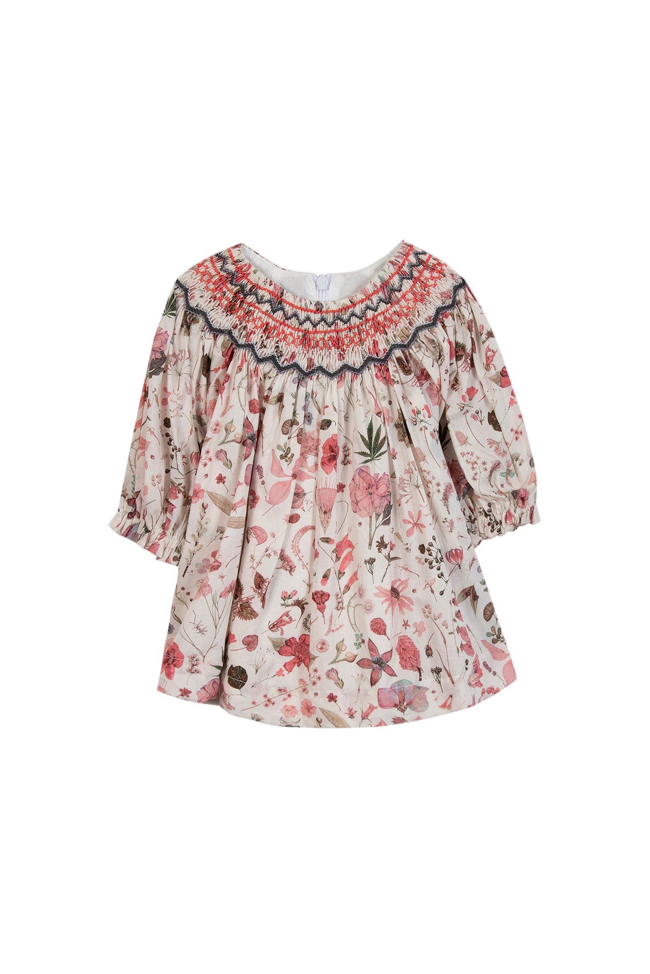 This Tartine et Chocolat dress seduces with its delicate liberty fabric, enhanced by a smocked cut and hand-embroidered embroidery, bringing a poetic and refined touch to the whole. Carefully crafted, it offers comfort and elegance to accompany little ones with charm throughout the seasons.
