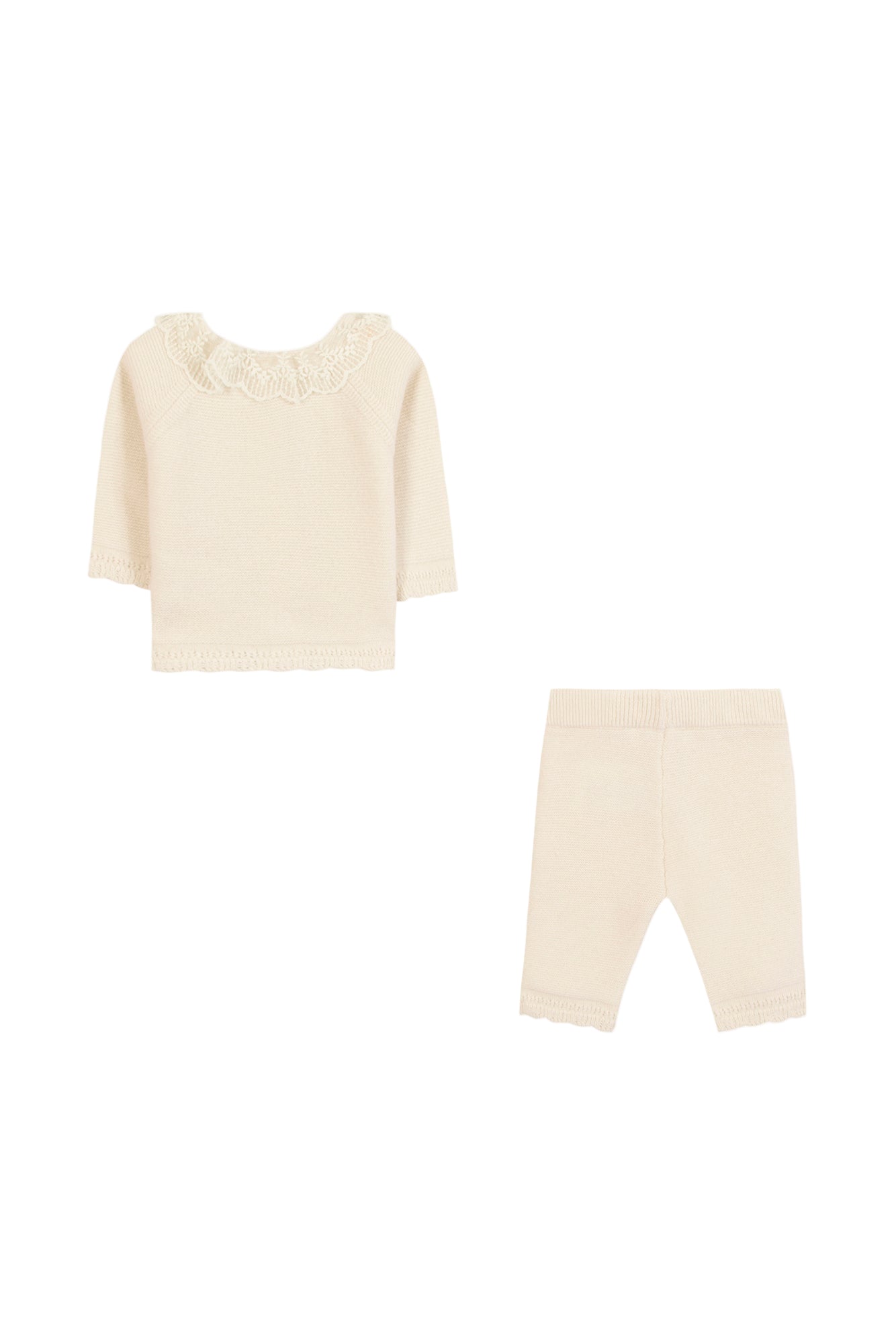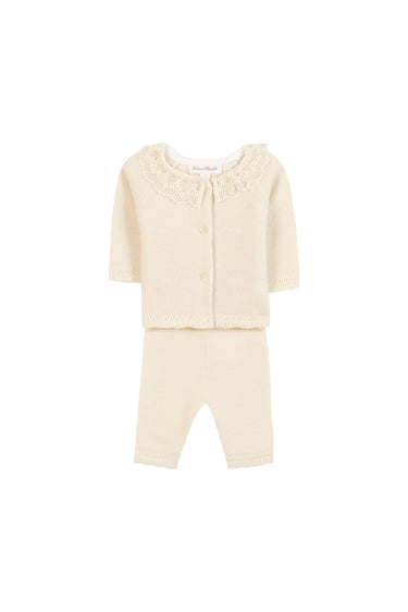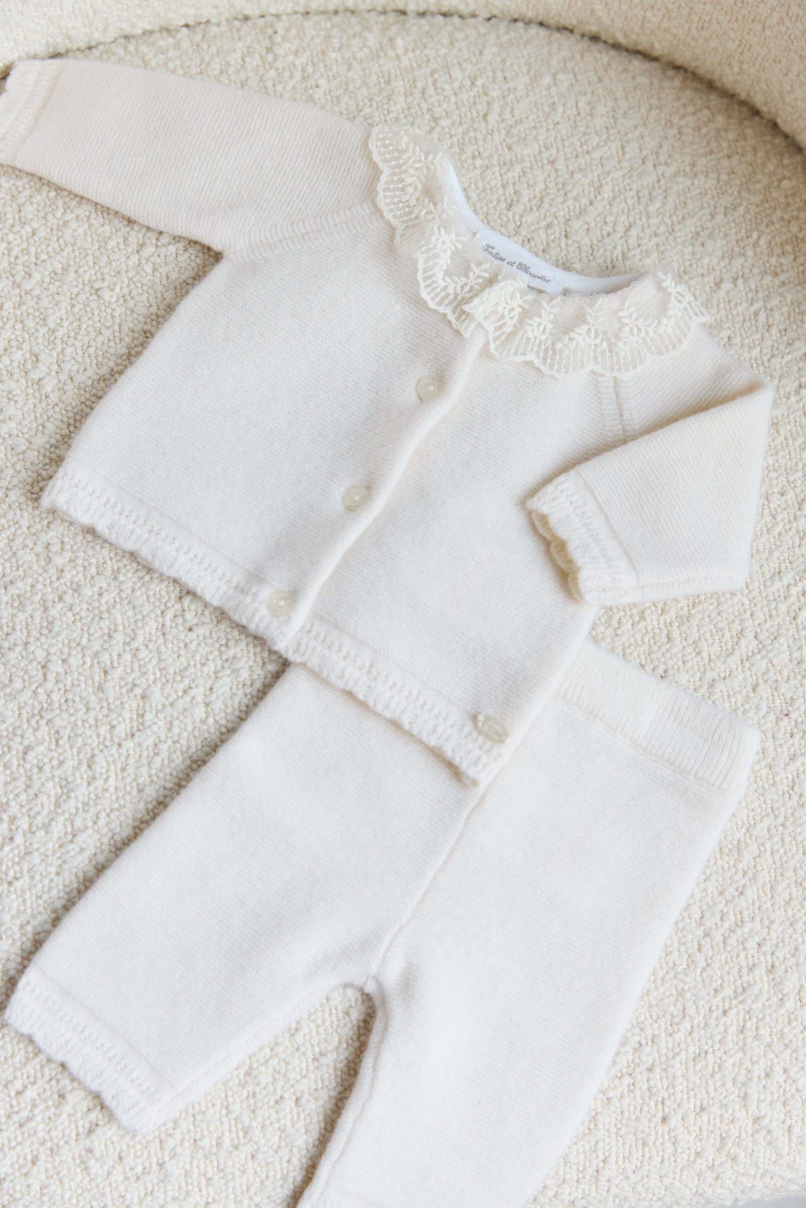 Tartine et Chocolat Wool Cardigan & Pants Set - Pearl