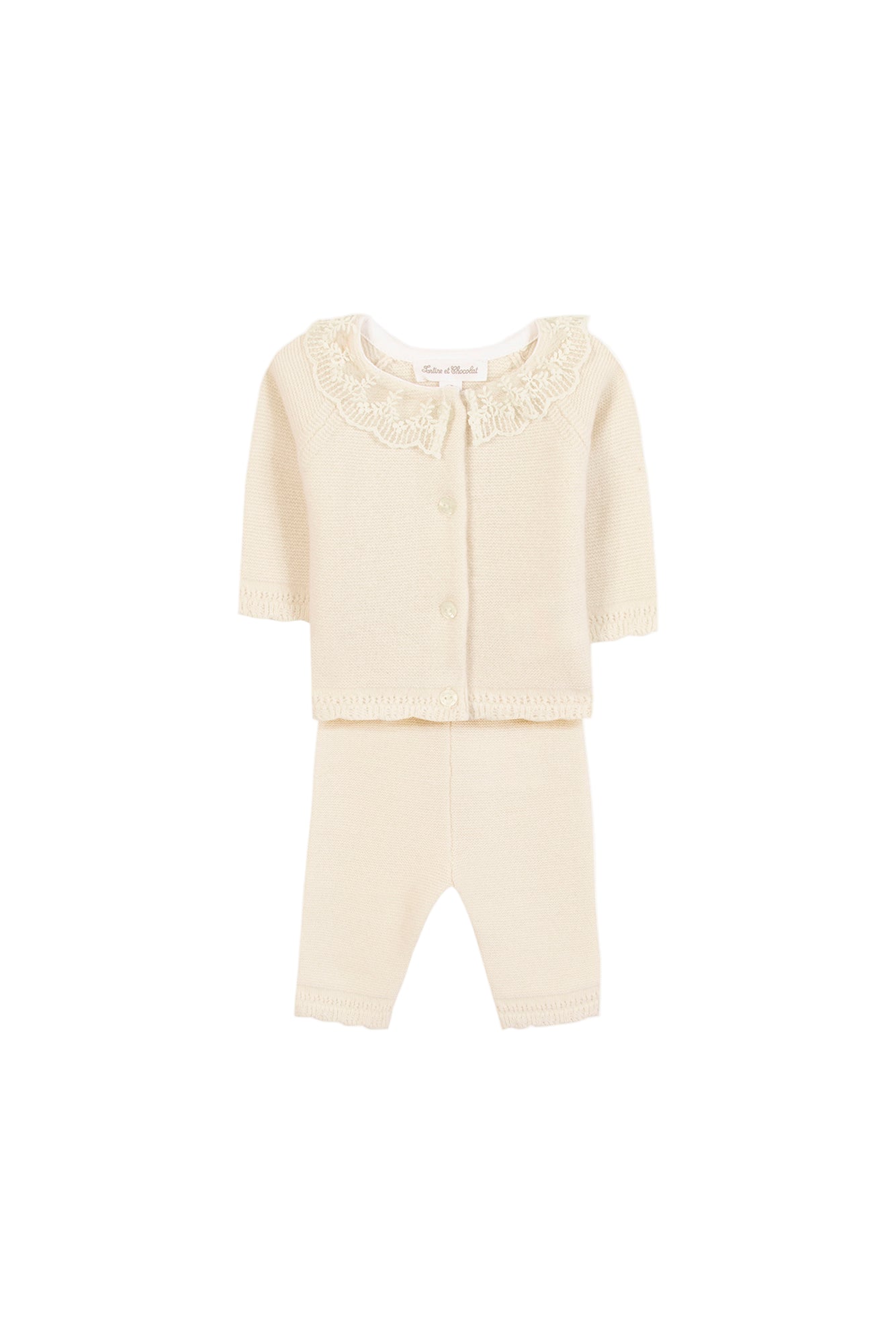 Tartine et Chocolat Wool Cardigan & Pants Set - Pearl