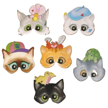 A set of six cute Cat Themed masks. The masks are half-face and pre-strung ready to wear - enabling you to eat, drink and dance whilst wearing them. They are a great and funny addition for children parties and other celebrations.