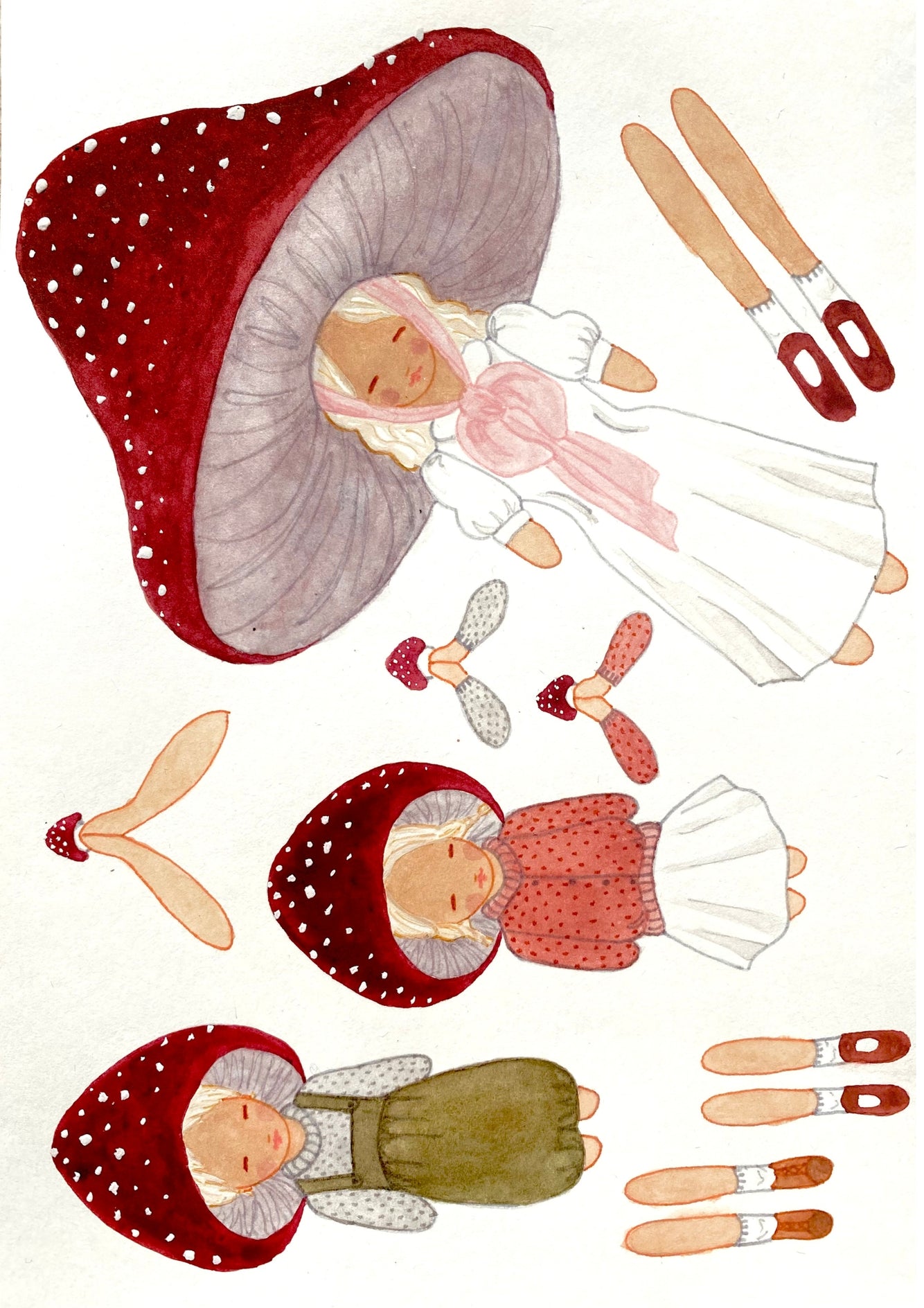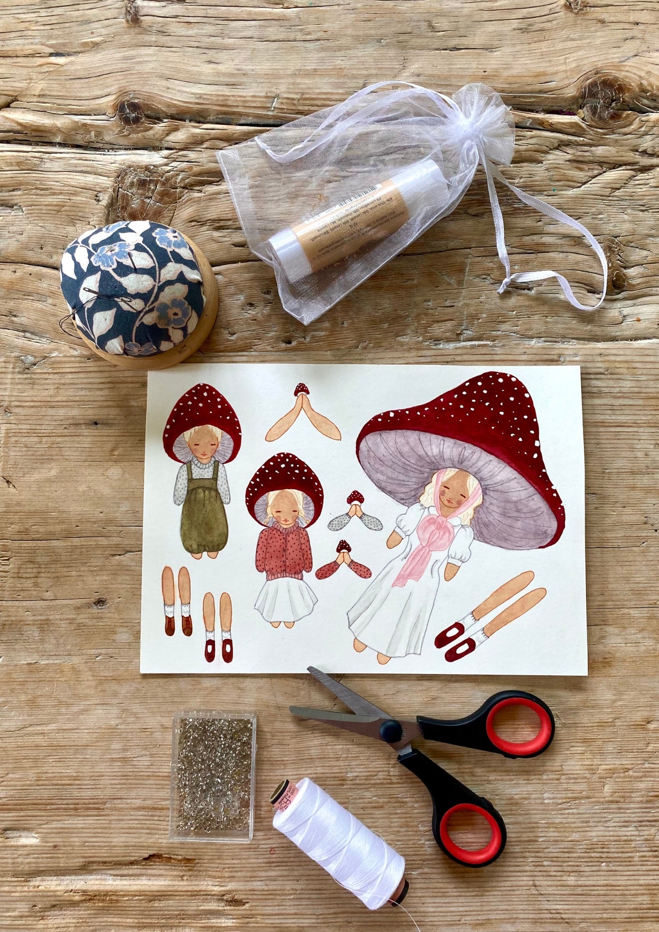 It's time to have fun! Cut out this cute mushroom family and glue or sew them together with a needle and thread. Hang them in the window, on the door, under a shelf or on a crooked branch. Please note - when cutting - that the print is not 100% identical on both sides as they are hand-painted.