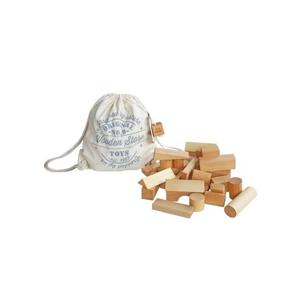 Natural blocks 30 pieces packed in a thick cotton sack with beautiful natural plait.