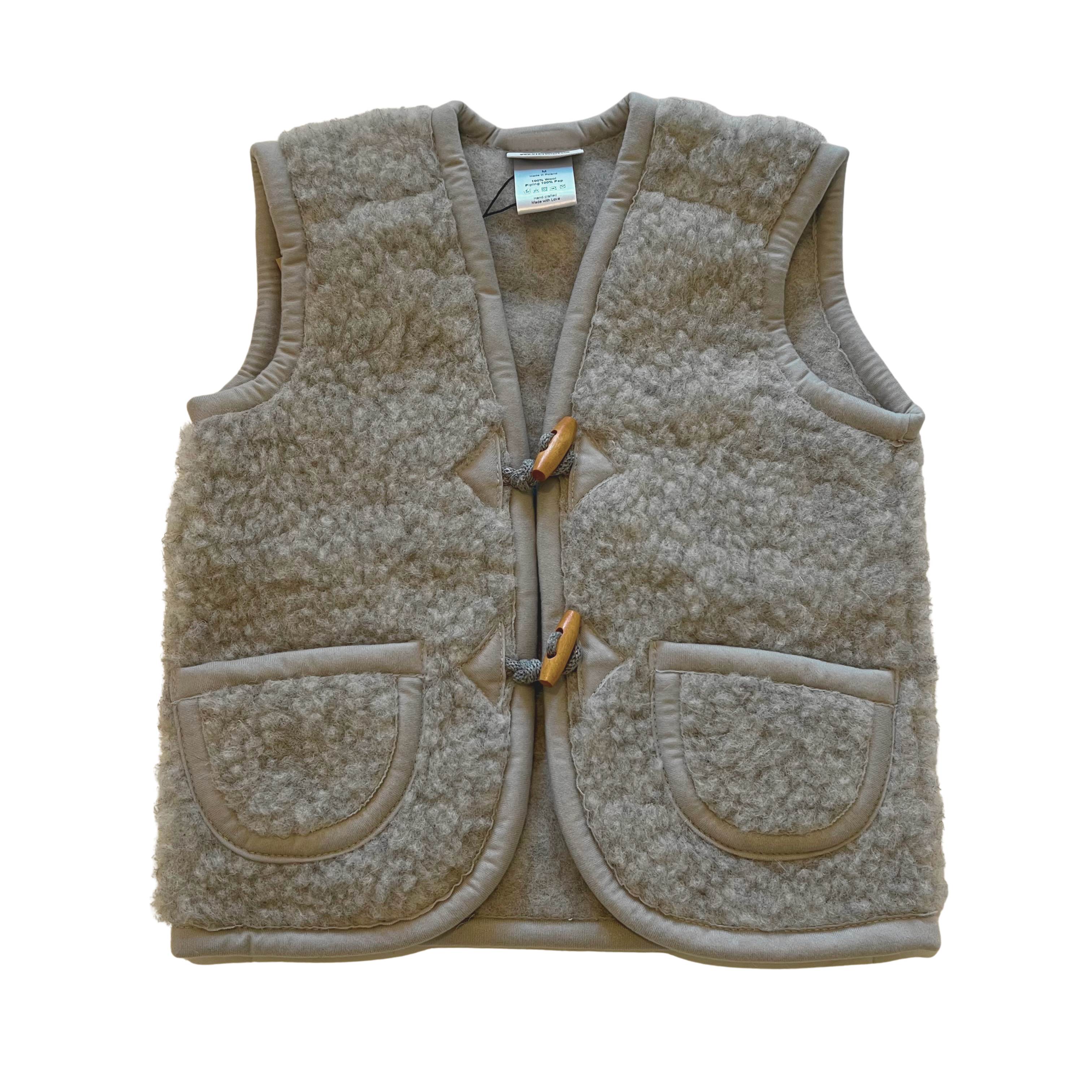 Made from 100% natural merino wool, they are breathable and incredibly durable. Depending on the size, the body warmers fasten with one or two stylish toggle buttons and have pockets from size 98/104.