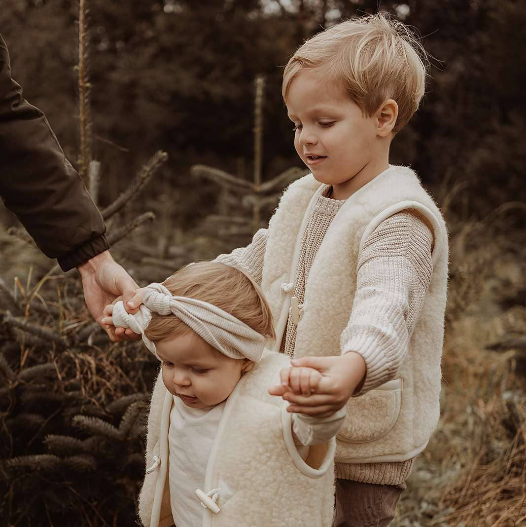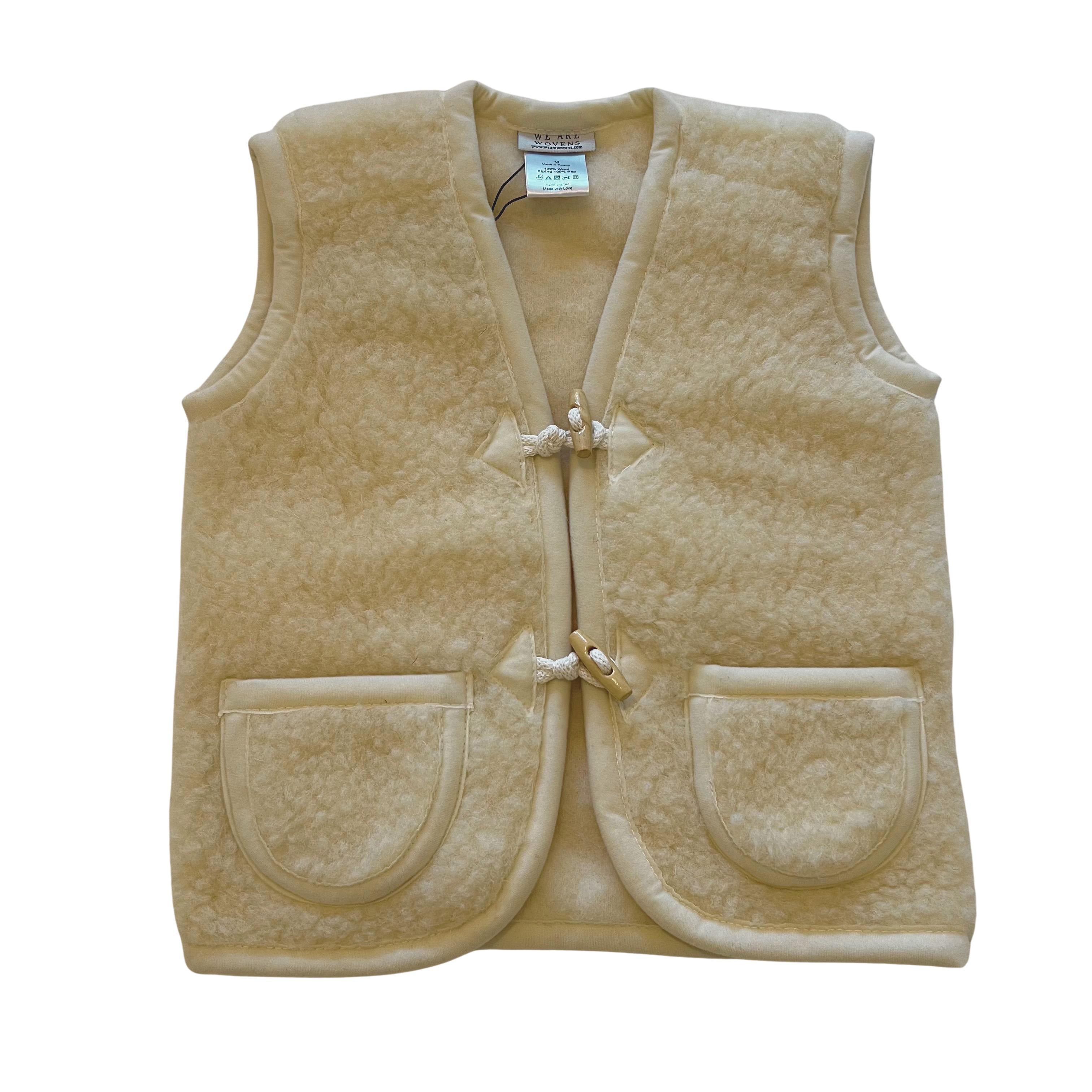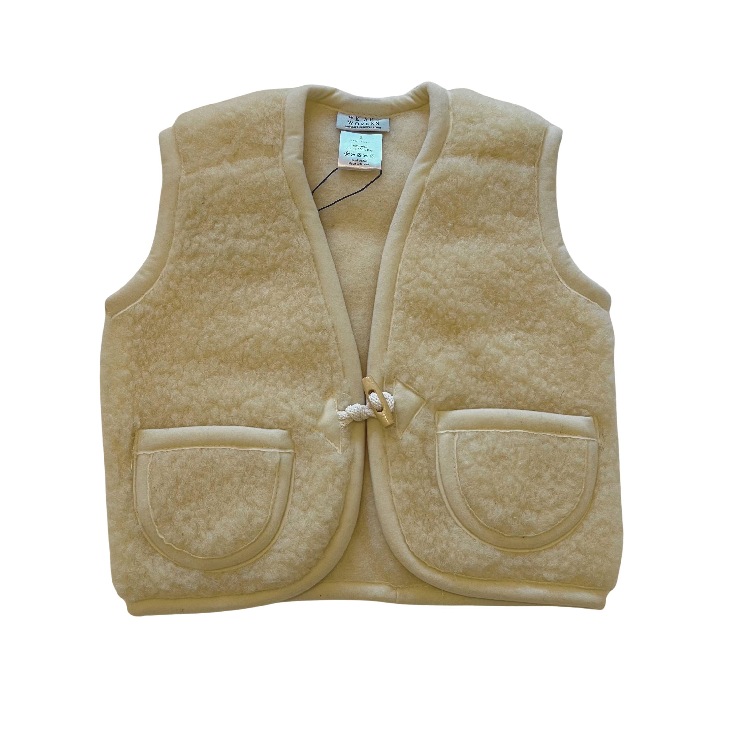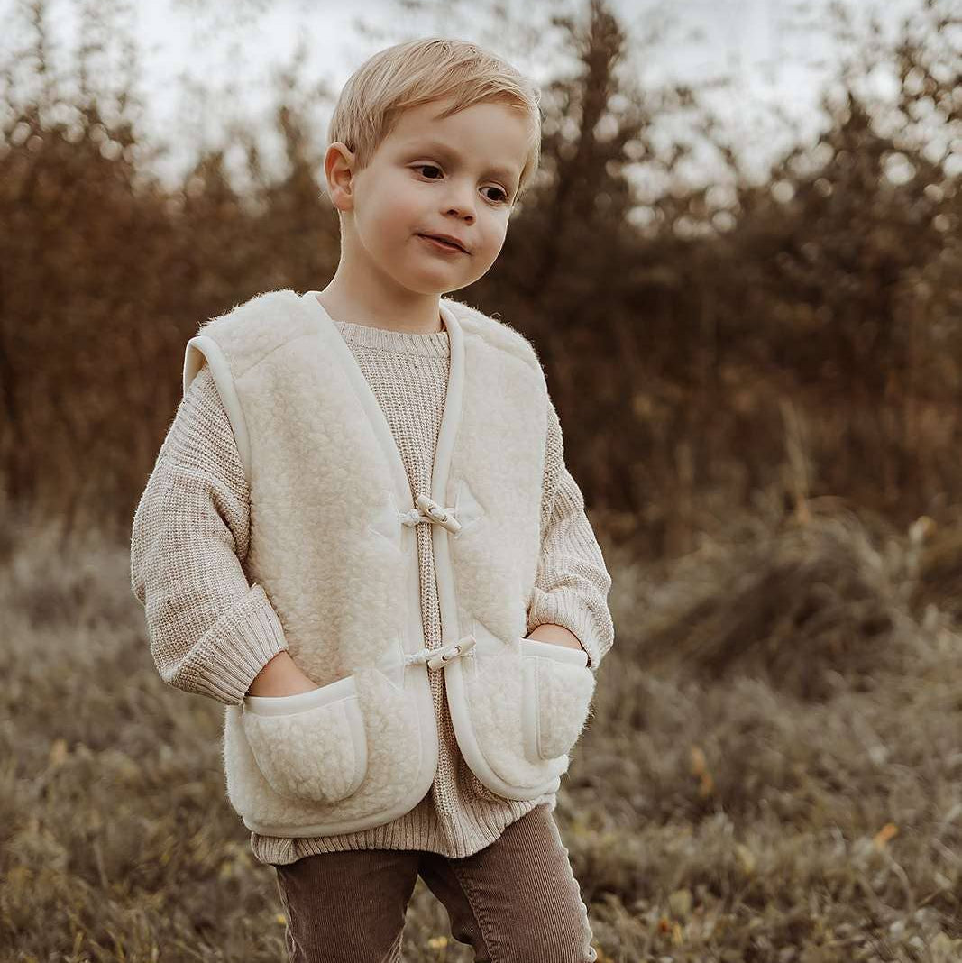 Made from 100% natural merino wool, they are breathable and incredibly durable. Depending on the size, the body warmers fasten with one or two stylish toggle buttons and have pockets from size 98/104.