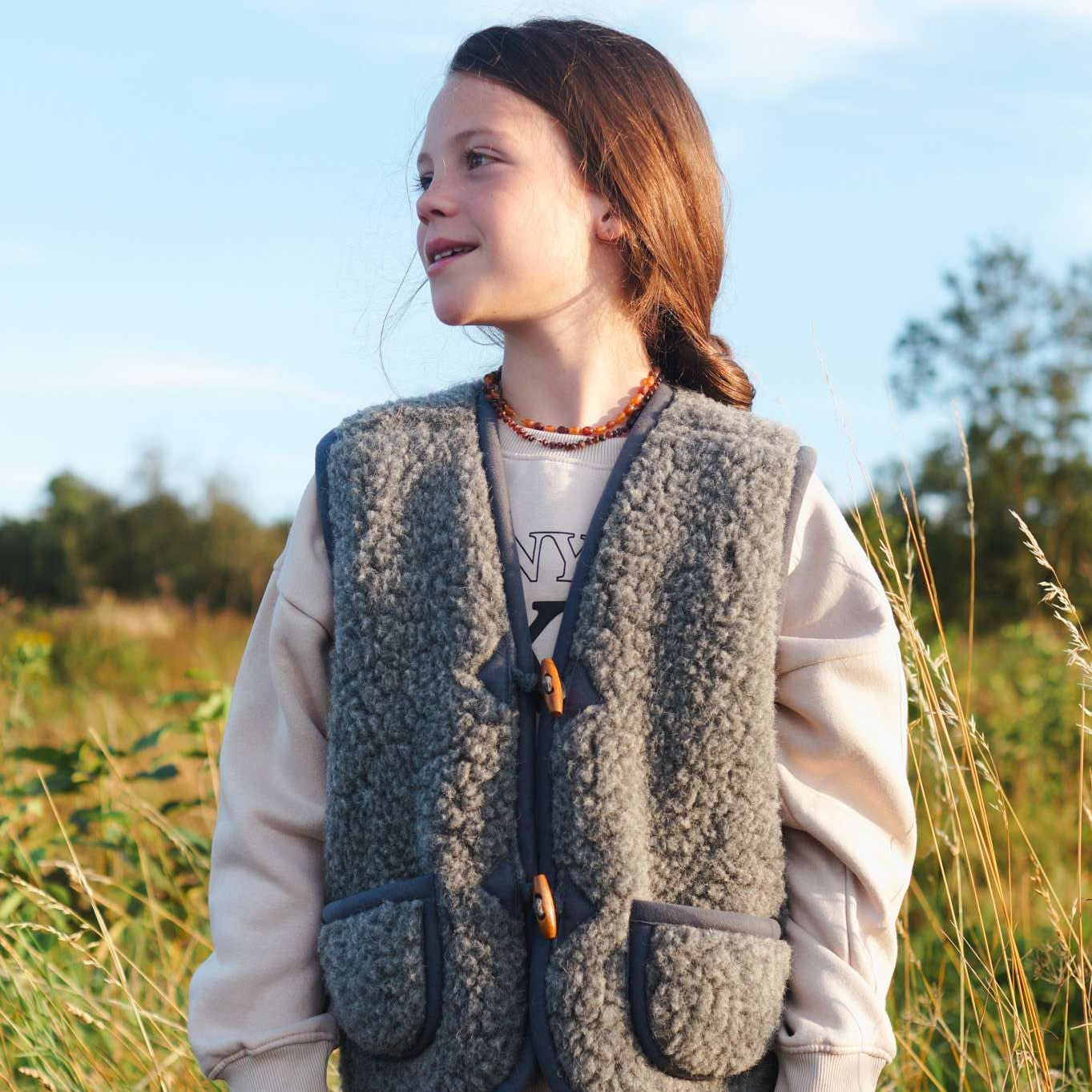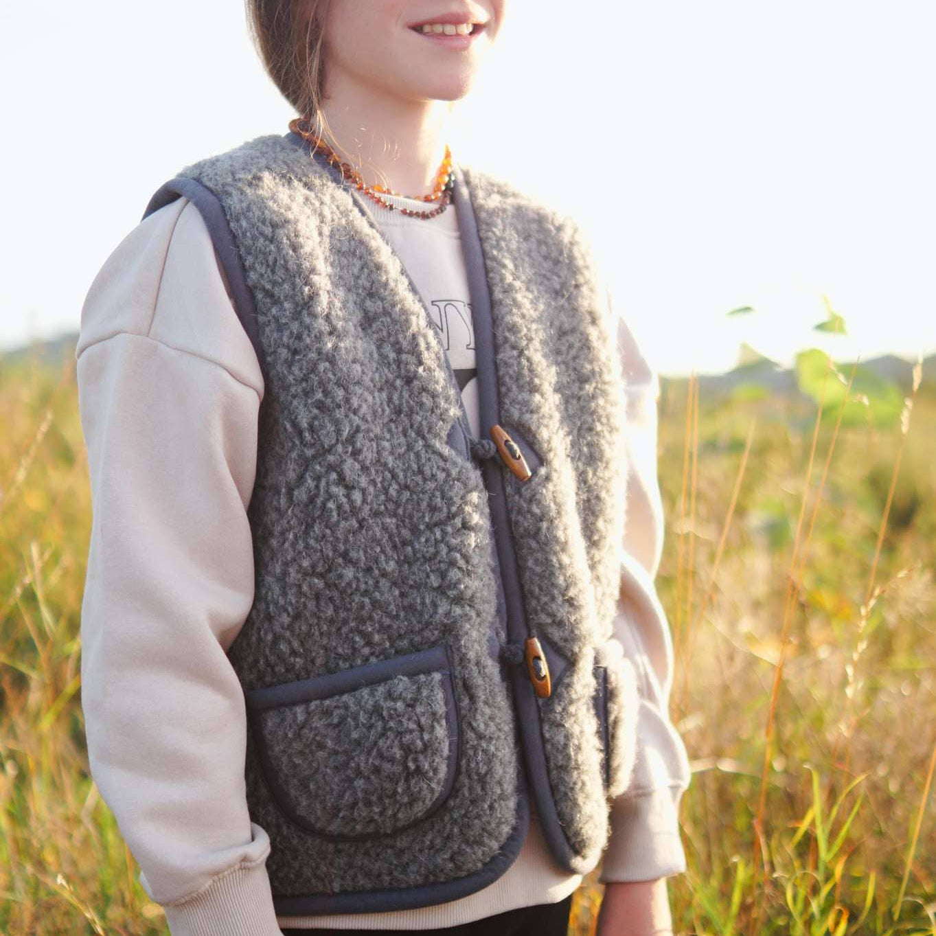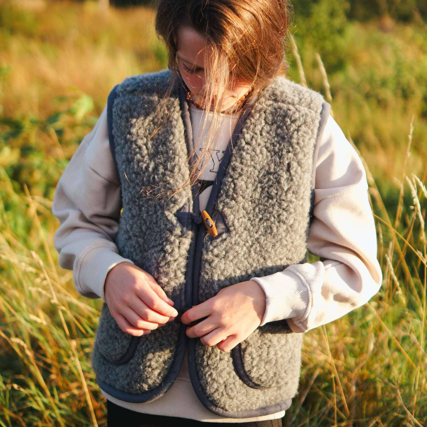 Made from 100% natural merino wool, they are breathable and incredibly durable. Depending on the size, the body warmers fasten with one or two stylish toggle buttons and have pockets from size 98/104.