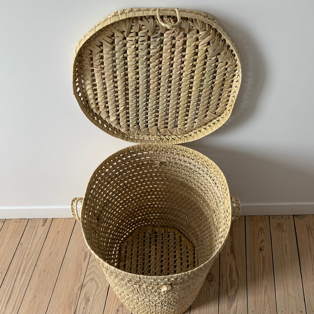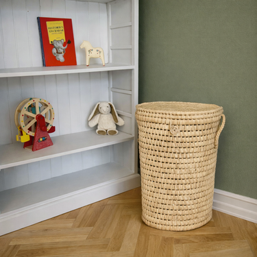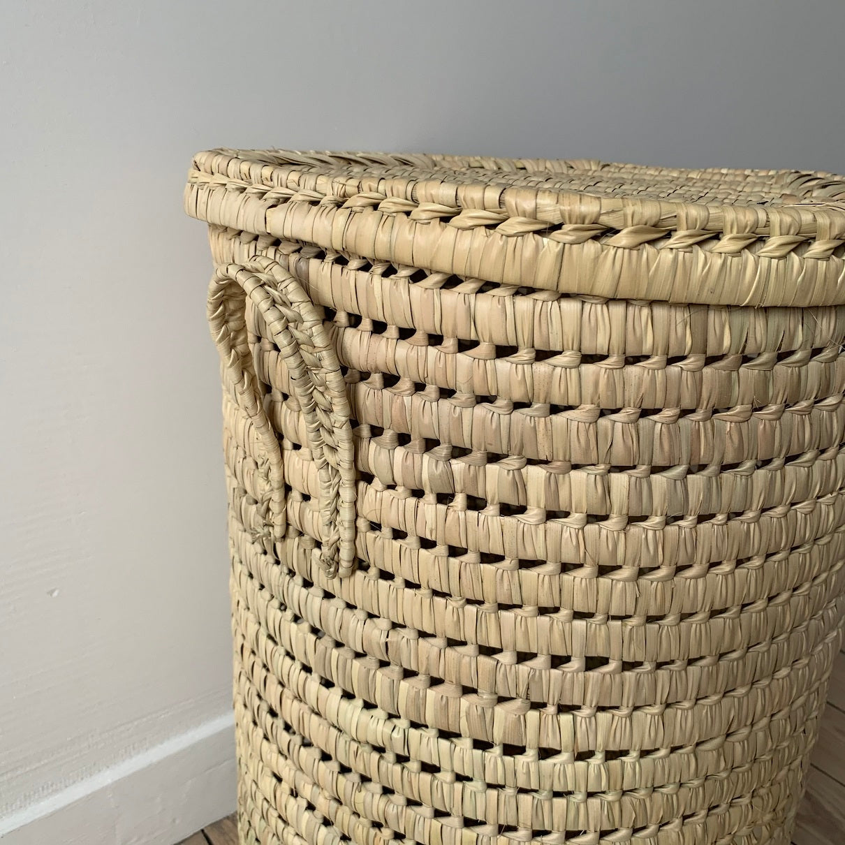 This versatile Palm Leaf Laundry Basket is perfect as a toy box in a kid's room, a laundry basket or stylish storage for blankets in a living room. Each trunk is crafted in 100% palm leaves, ensuring uniqueness with slight variations in colors and dimensions.